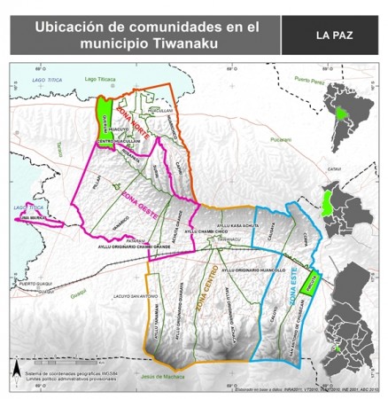 en la comunidad de Queruni, en las coordenadas (UTM): Este 543020, Norte 8166094; en las tierras altas de Bolivia, en el municipio de Tiwanaku del departamento de La Paz, a una altura promedio de 3.840 metros sobre el nivel del mar. La comunidad de Queruni es perteneciente a la zona Norte del municipio de Tiwanaku, tiene una superficie de 646.96 ha y su población es de 295 habitantes (INE, 2012).