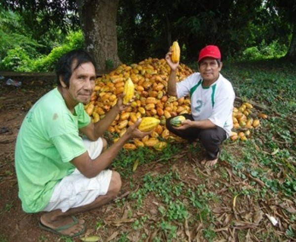 Horacio Cartagena y Mario Guari, con mazorcas de cacao