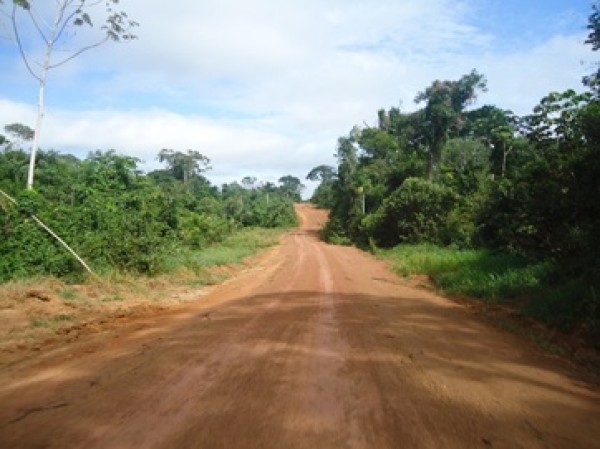 Doña Norma Koga, en el ingreso a su parcela agroforestal