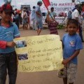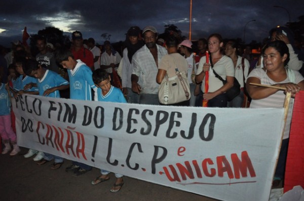 Nin?os preguntan para do?nde los llevara?n. Protesta en contra el desalojo, en 2012