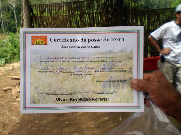 Cartel hecho por los campesinos cuenta la historia de casi 10 anos de lucha, 2009
