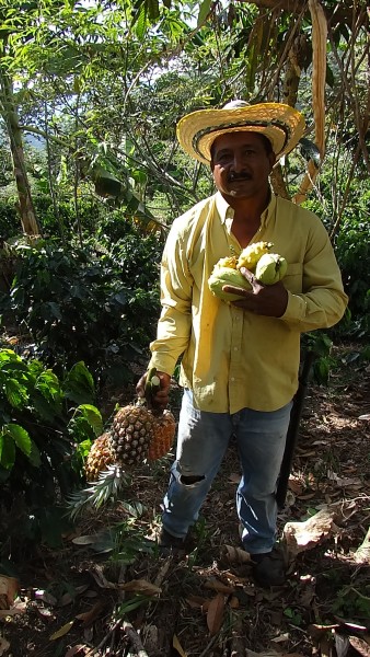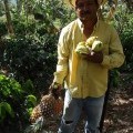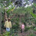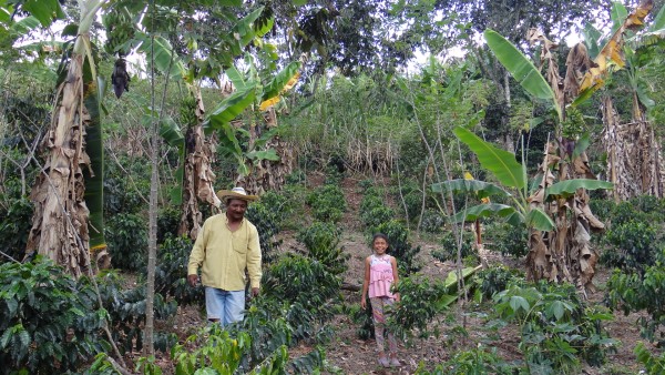 Otoniel y su nieta en el cultivo de café de producción agroecológica