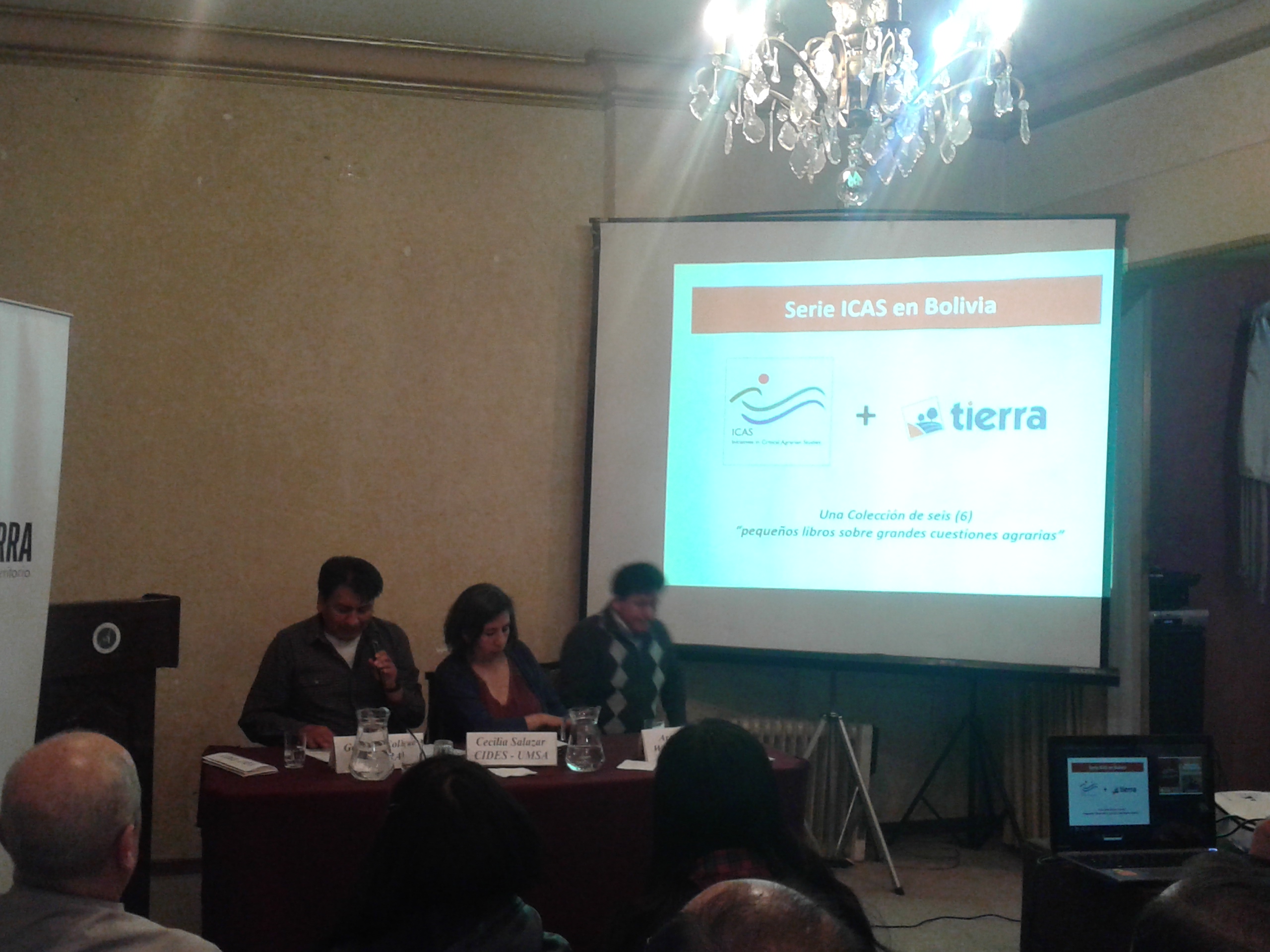 La actividad central estuvo concentrada en la presentación de tres libros de la serie ICAS (Initiatives in Critical Agrarian Studies) que fueron presentados por el director de TIERRA, Gonzalo Colque. Los investigadores y docentes del CIDES, Mauricio Gil Q., Elizabeth Jiménez y José Nuñez del Prado, estuvieron a cargo de los comentarios, respectivamente, de los libros: