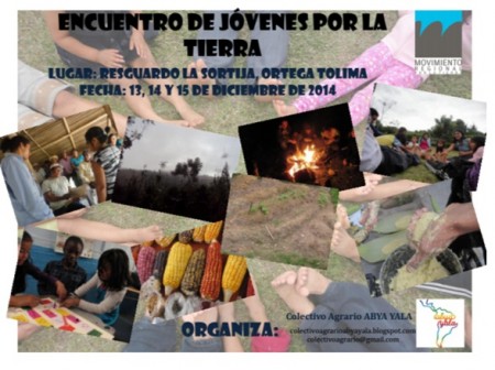 El Resguardo Indígena La Sortija, del Municipio de Ortega en la región de Tolima fue sede los días 13, 14 y 15 de diciembre del Primer Encuentro de Jóvenes por la Tierra organizado por el Colectivo Agrario Abya Yala. El Resguardo La Sortija tiene amplios antecedentes de lo que ha sido la lucha por la tierra, dando una batalla admirable en la recuperacion de tierras cumpliendo más de 20 años de adjudicación de sus territorios por parte del INCORA logrando así constituirse como resguardo, gozando de la autonomía territorial y política que les permite esa figura.