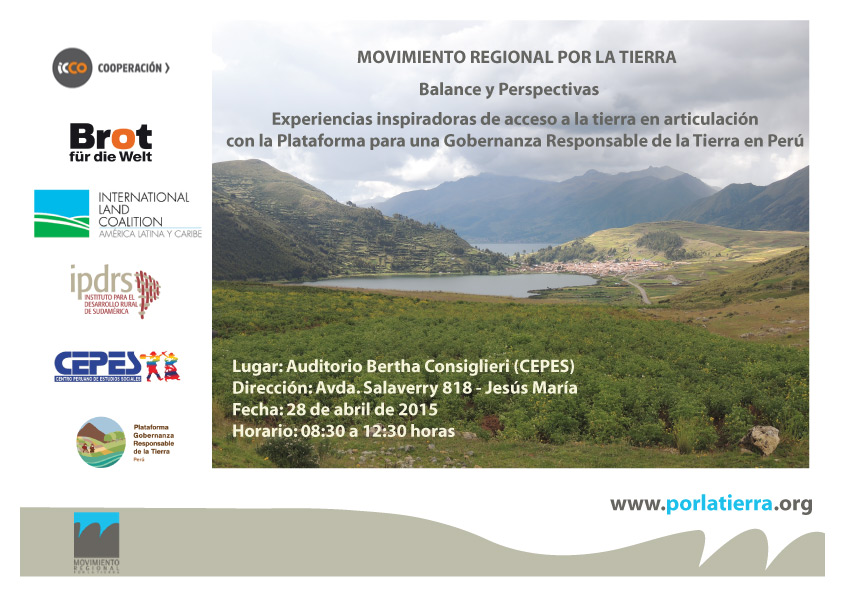 La presentación de esta iniciativa se desarrolla en el marco de la articulación de las acciones del Movimiento Regional por la Tierra a la International Land Coalition (ILC) y la Plataforma para una Gobernanza Responsable de la Tierra Perú.